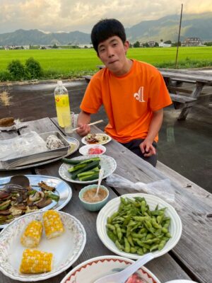 収穫した野菜をBBQでいただきました。